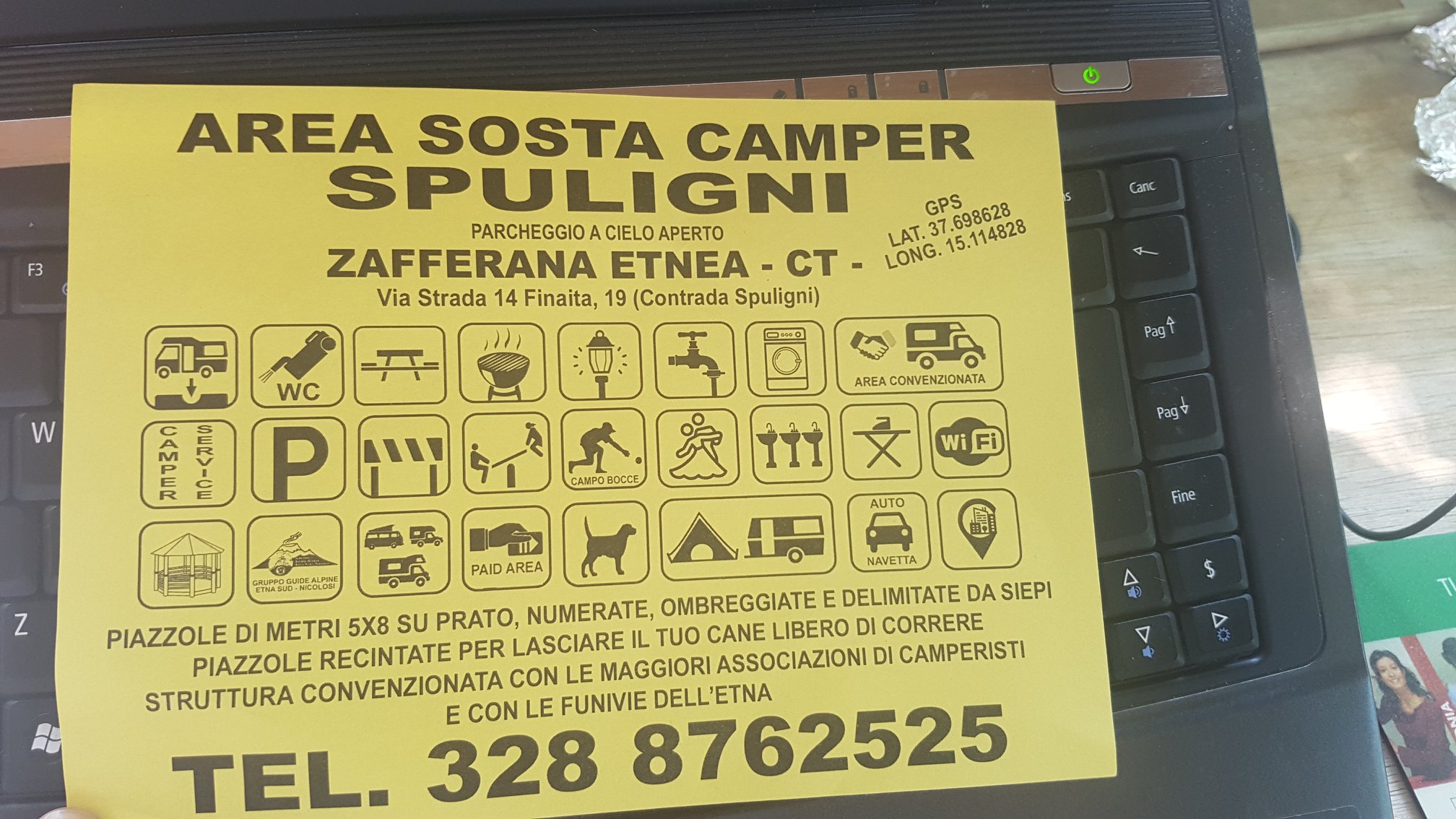 navetta centro città gratuito, area video sorvegliata, escursione vulcano Etna consumazione omaggio (offerta dalla funivia dell’Etna rifugio Sapienza),(al camperista che passa la notte nella struttura), tende da campeggio, affitto roulotte a giorni o a settimana, camper stop.