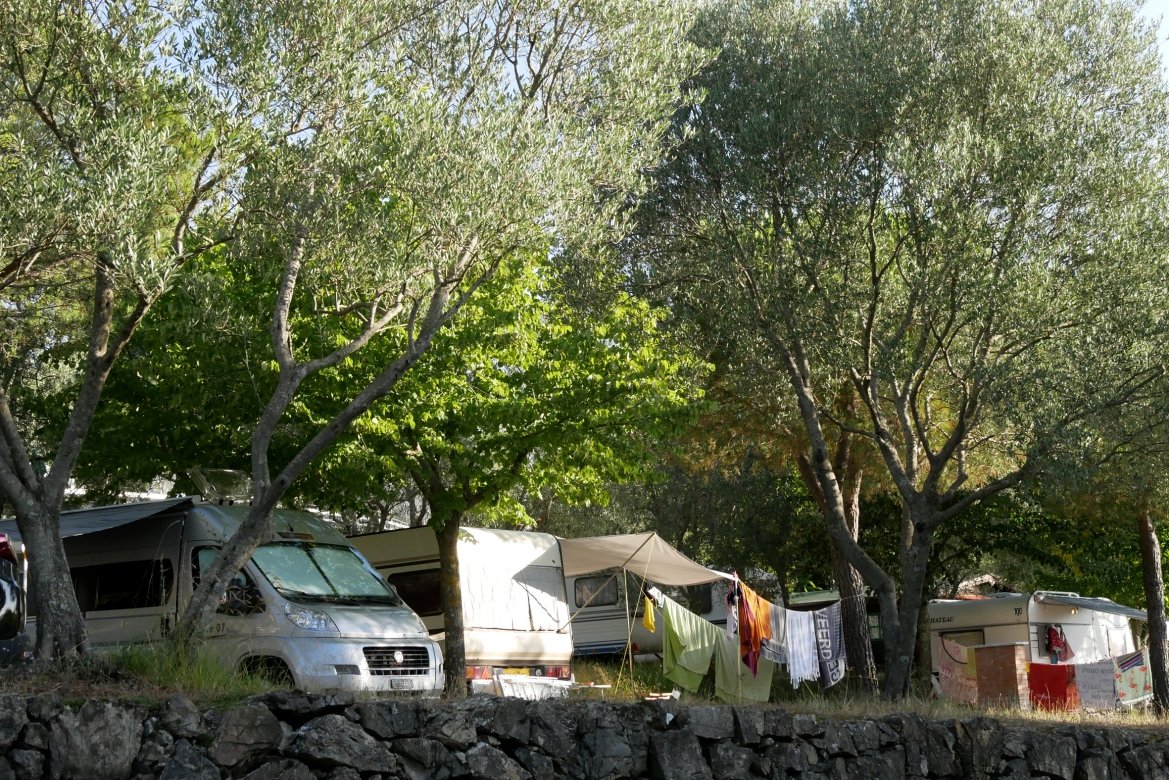 La superficie del camping è articolata in terrazze dotate di strade con illuminazione e allaccio corrente. Piazzole di varie metrature ombreggiate da ulivi e pini marittimi sono disponibili per tende, camper e caravan.