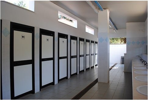 Servizi sanitari e docce calde gratuite.